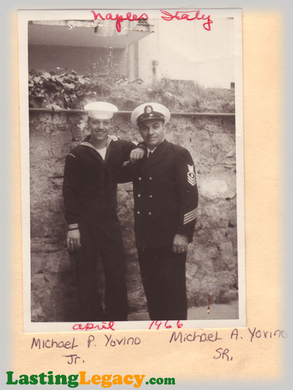 After I was discharged I couldn’t wait to get onto the train. It would take me about an hour to get home back to Brooklyn from where I got discharged. My wife was waiting for me at the subway when I got there. It was only about a block away from where they lived. That was the start of a new life for me. There was no way to explain it when I got off of the train and saw her waiting for me. When I got back I was in the same shoes as a lot of guys returning from the service: I had no job and no trade. Through a connection I had I got a job in a factory making eight dollars a week. It wasn’t much, but it was a start. I was at the factory for about eight years before going back into the Navy. I would end up putting 24 years into the Navy. I was a Drug Abuse Specialist in the Navy for awhile, and then later in my career I talked to some of my higher ups to figure out a way to go to Naples, where I was born. They did that for me and ended up stationing me there for four years. My wife and I had a baby boy there. My wife and I had a very good life after I went back into the Navy. We had two children and I kept going up in grades in the Navy. When I made Chief it was a big honor. Eventually I made E8. And then I said that is enough and retired as an E8.